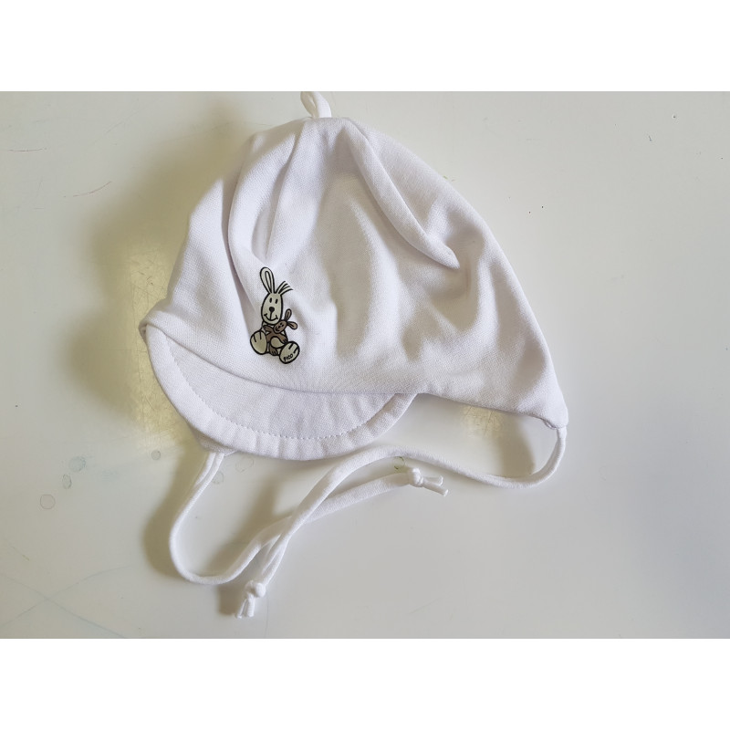 Bílá s králíčkem, zavazování pod krkem, kšilt